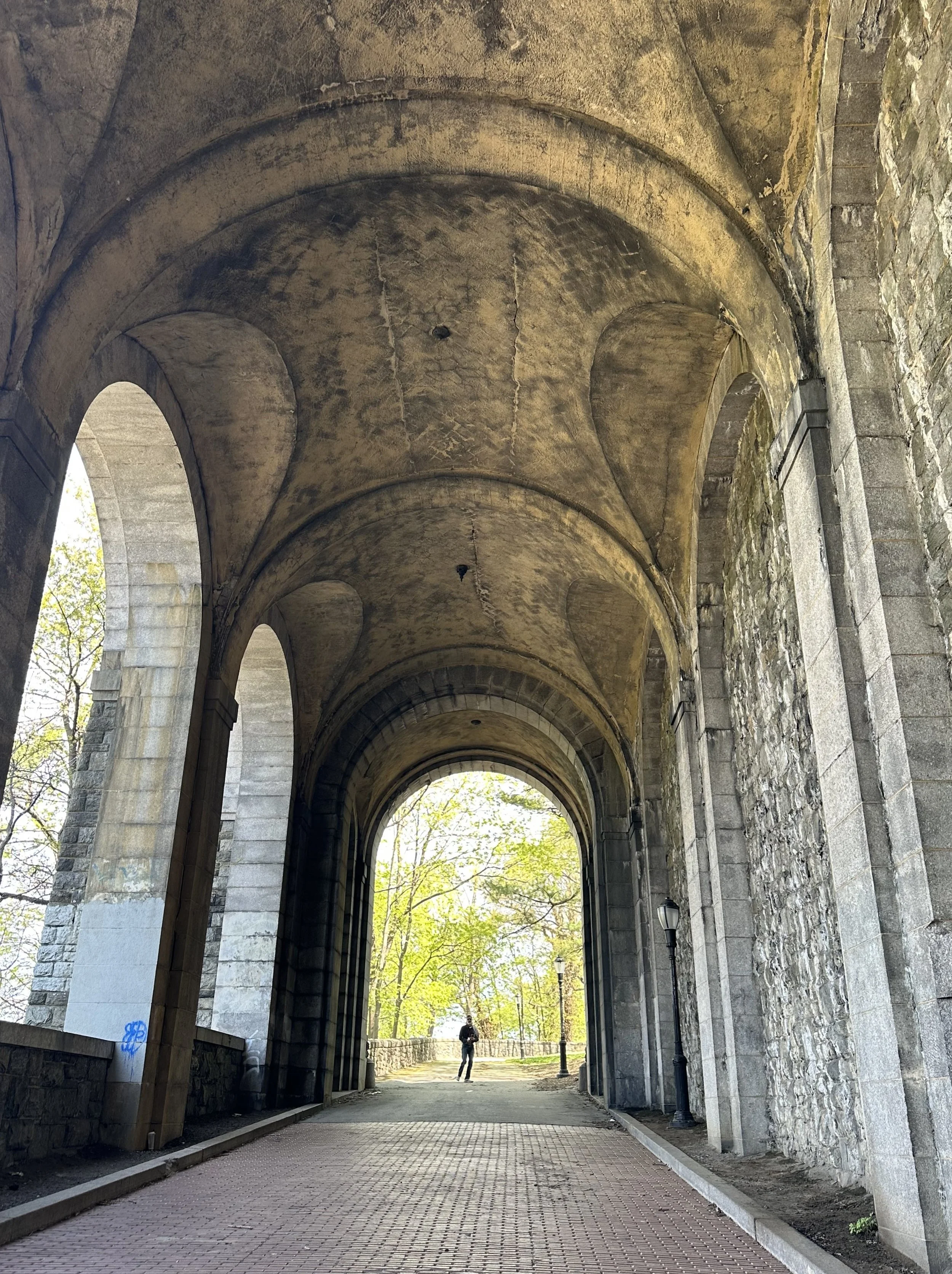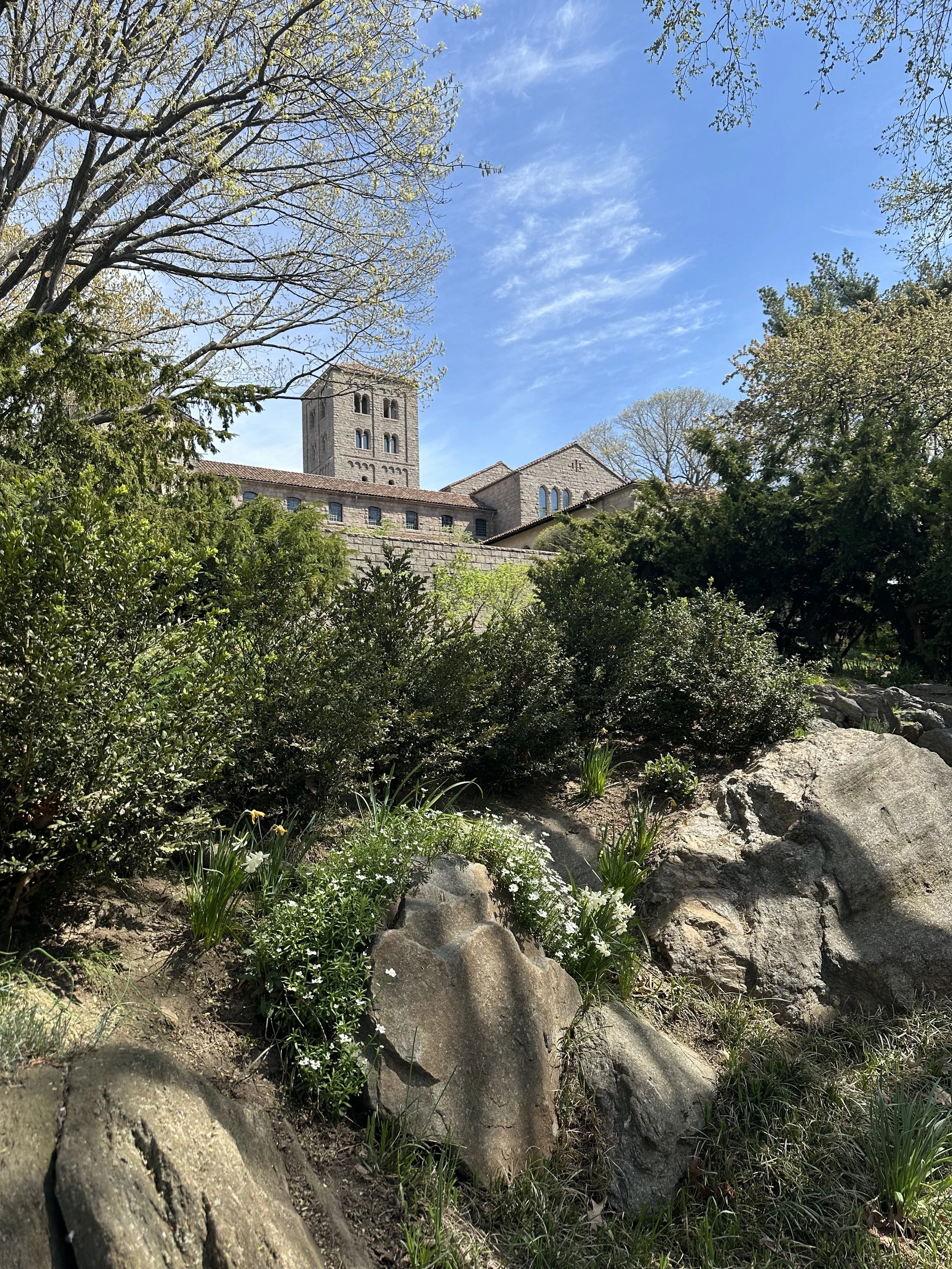 The Greeters met at the 190th Street station of the A subway line, taking the elevator up to Fort Washington Avenue. Across the street from the station is the Mother Cabrini Shrine, dedicated to the patron saint of immigrants. From there, it was a short walk to 192nd Street and the southern end of Fort Tryon Park, 67 acres of greenery spanning the Washington Heights and Inwood neighborhoods. Built by John D. Rockefeller, Jr., the park offers views across the Hudson River, two playgrounds, and The Cloisters, which houses the Metropolitan Museum of Art’s medieval European art and artifacts, including the famous Unicorn Tapestries.